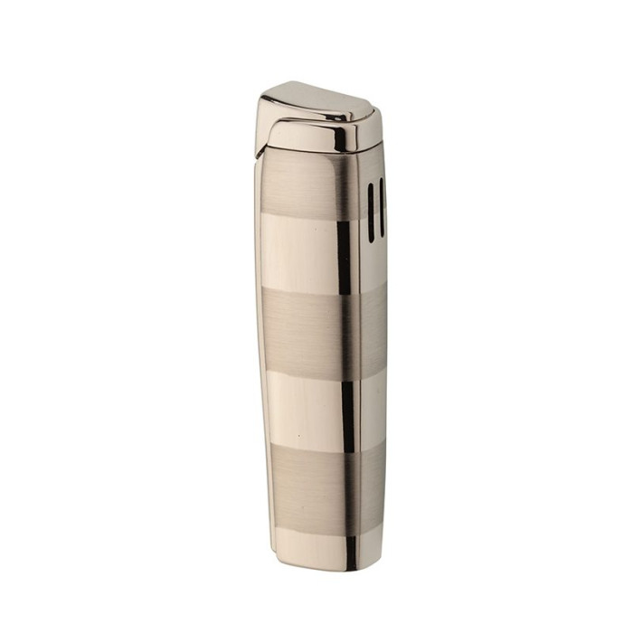 Briquet tempête au style graphique, alternance poli/brossé pour une allure couture.