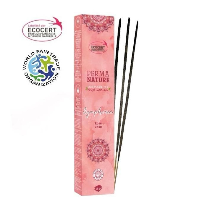 Encens naturel 15 g au parfum rose : des notes florales, poudrées et délicates pour installer tendresse et harmonie dans la pièce.