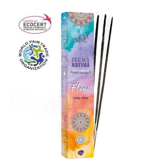Encens naturel 15 g au parfum ylang ylang : des notes florales, solaires et exotiques pour installer détente et sensualité dans la pièce.